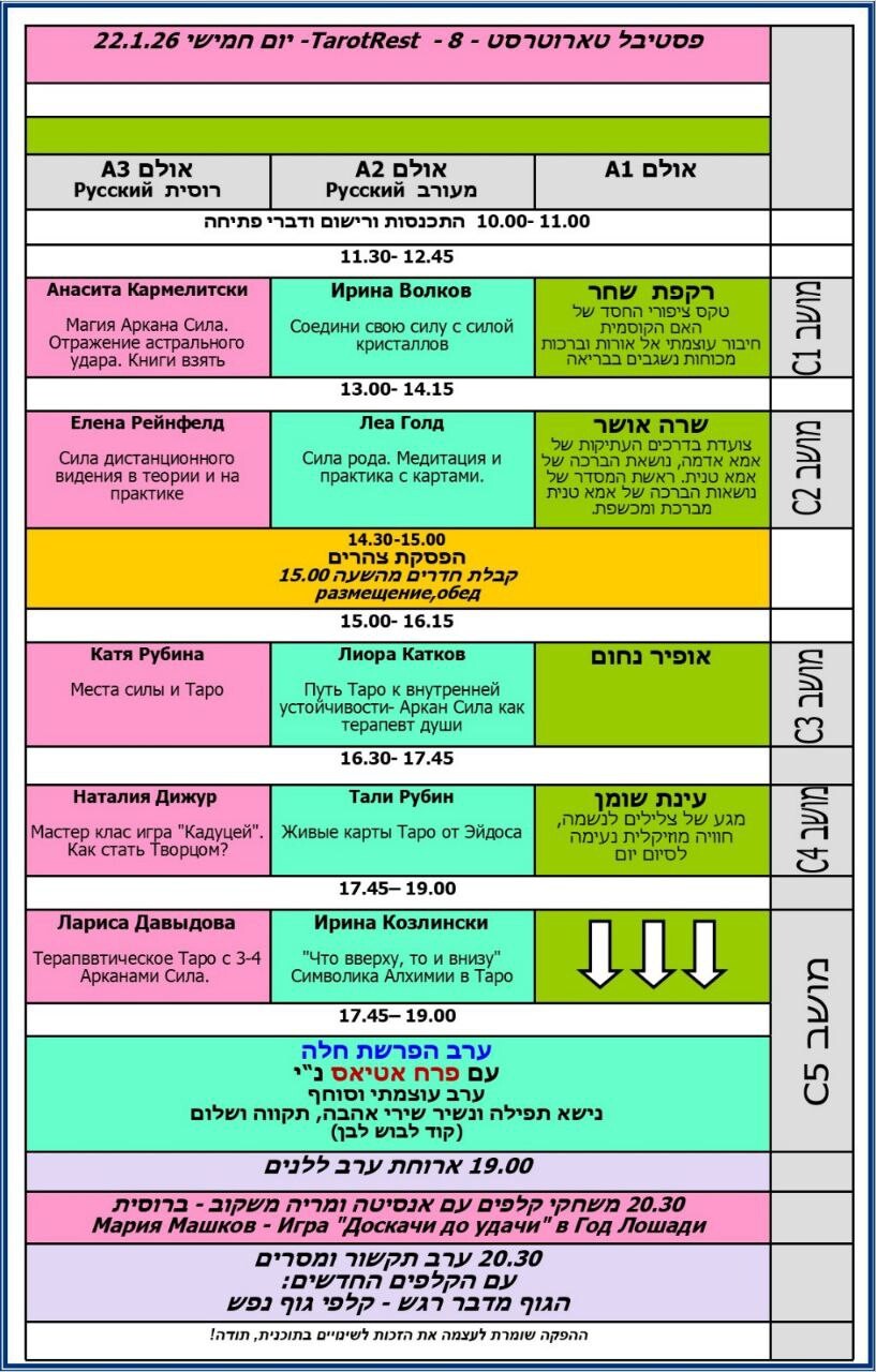 - Мастер классы на русском языке и иврите,