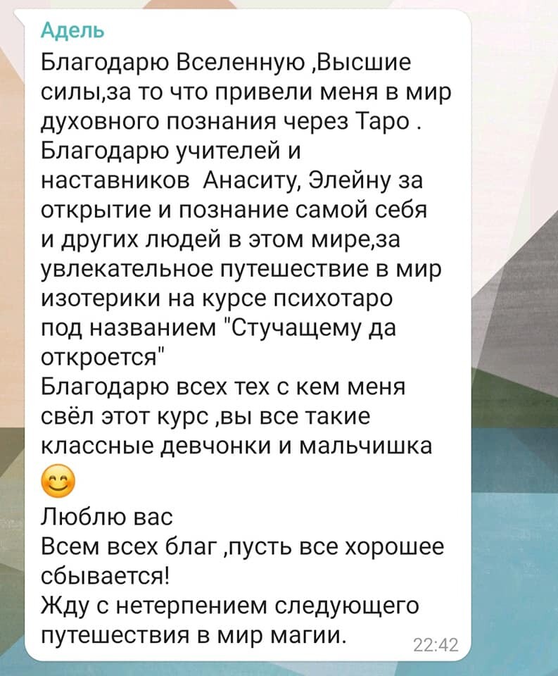 Мы уже обучили более 1000 специалистов, успешно консультирующих на Таро.